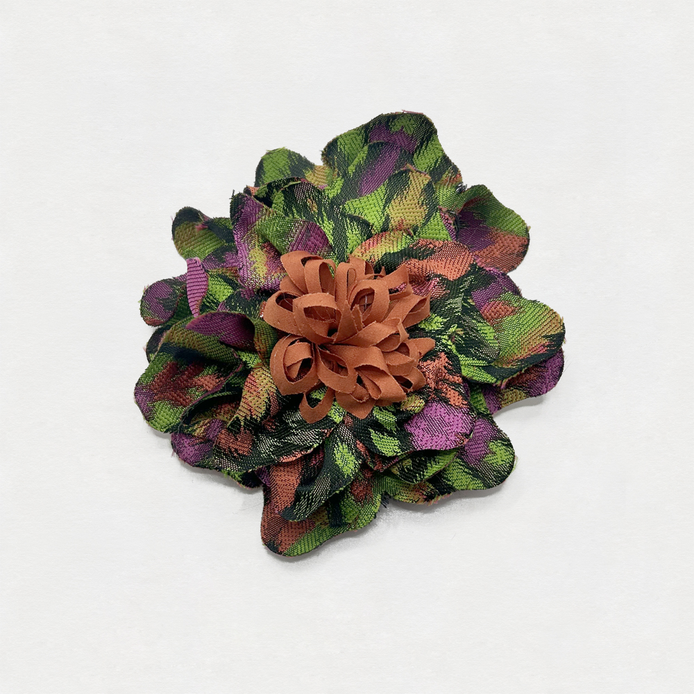 Fiore/Spilla in Tessuto misto multicolor a Fantasia astratta + Cotone arancione