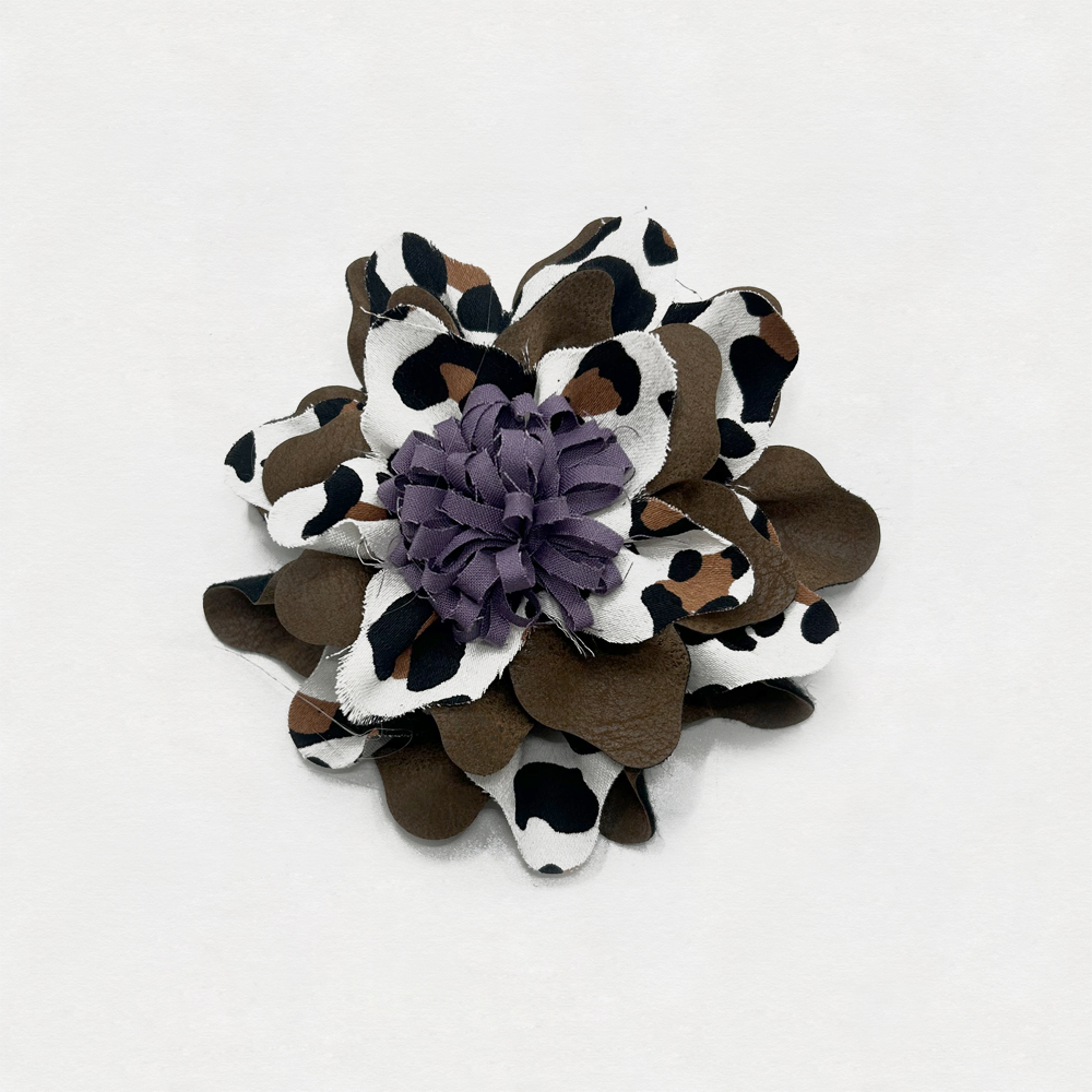 Fiore/Spilla in Tessuto misto marrone + Cotone fantasia animalier + Cotone lilla