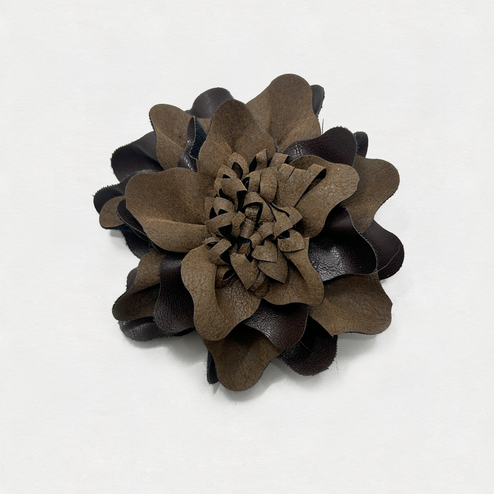 Fiore/Spilla in Tessuto misto marrone + Similpelle bordeaux